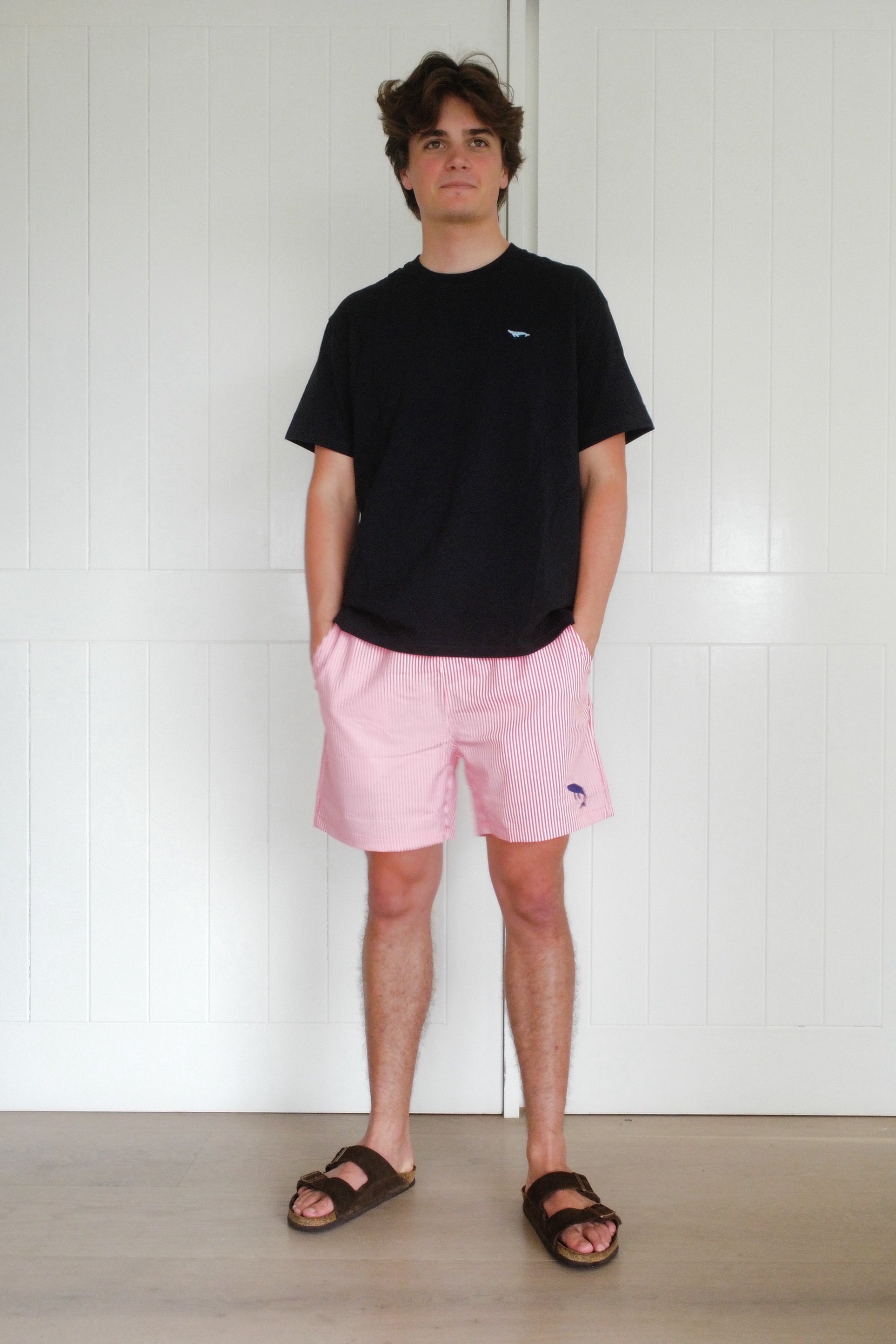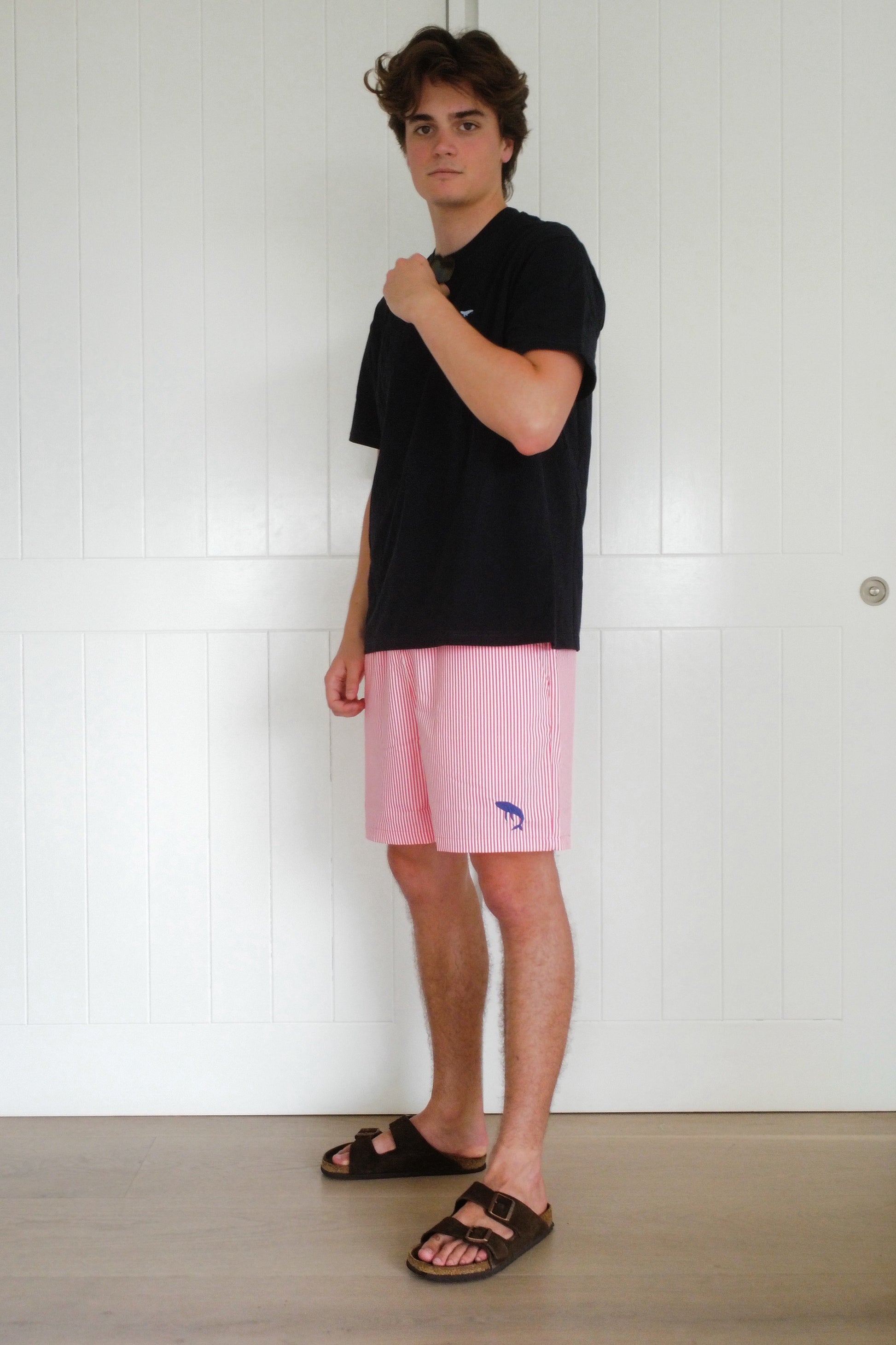Red and white stripes. Classic. Nothing pretentious. A little bit of navy thrown in for extra style points, but nothing too risqué. It’s hard to go wrong with these swim-shorts, either in the water or out.